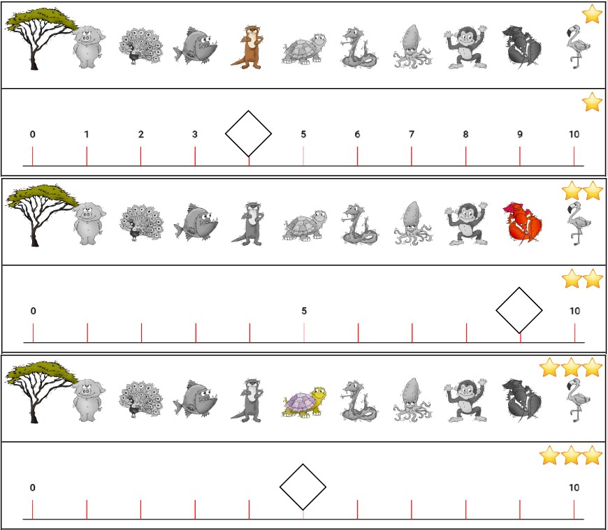 Ainsi, lorsque les étoiles d'une même couleur sont validées, l'enfant repart avec une "médaille" pour le féliciter de son avancée.