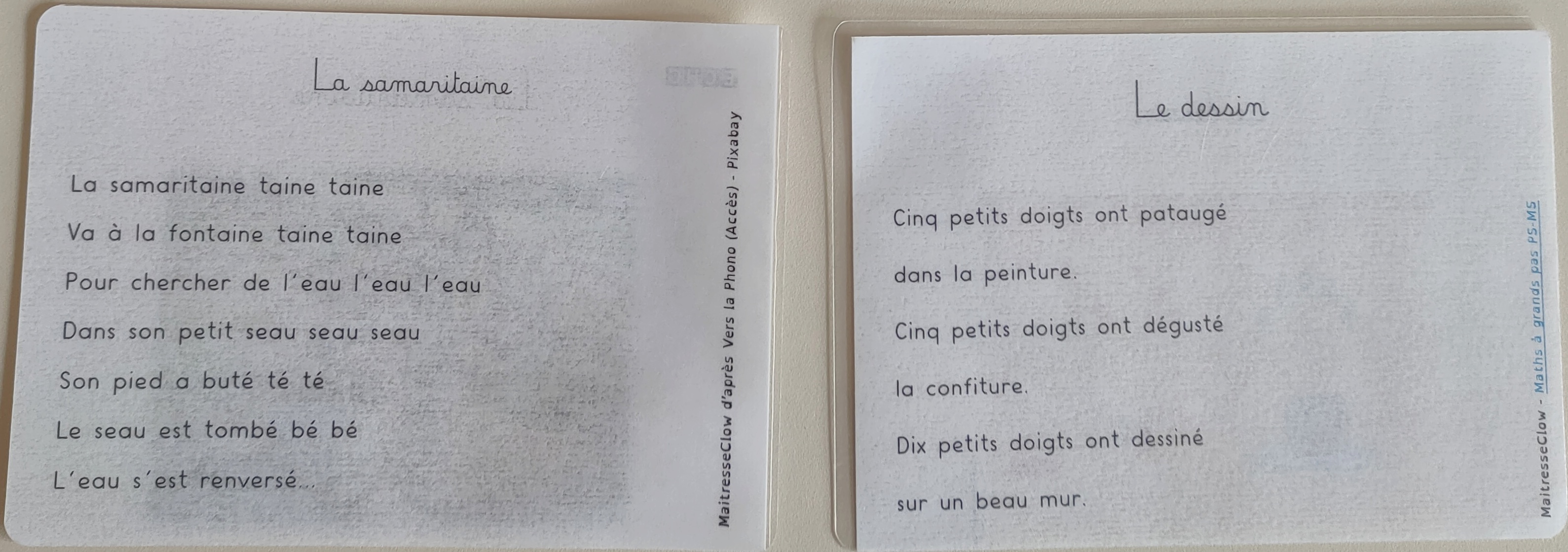 Infos : Les comptines sont à imprimer en recto-verso, retournés sur les bords courts.